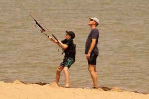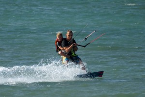 Sind noch jüngere Geschwister dabei? Kein Problem, wir haben einige Trainerkites (Matten), von 1-3qm, welche auch schon am Strand geflogen werden können. Und wer Glück hat, kann vielleicht, wie Yari, mit einem unserer Kitelehrer eine Runde auf dem Rücken mitfahren und die erste Kiterluft schnuppern 🙂
